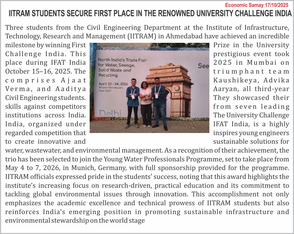 CONVOCATION| ONLINE PAYMENT| IITRAM MIS| LIBRARY| TENDER| CAREER| ALUMNI| NEWS| SSIP 2.0 Cell| FAQ @IITRAM