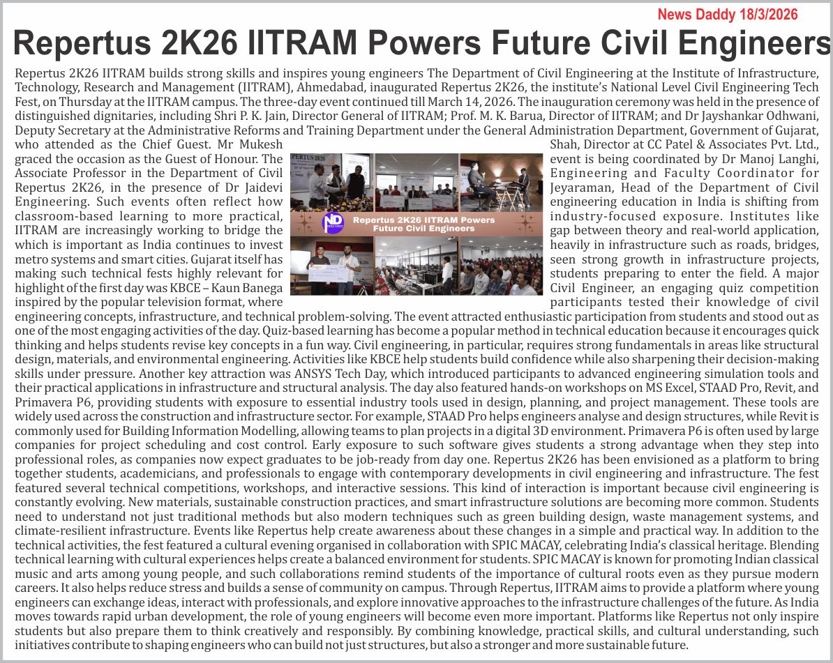CONVOCATION| ONLINE PAYMENT| IITRAM MIS| LIBRARY| TENDER| CAREER| ALUMNI| NEWS| SSIP 2.0 Cell| FAQ @IITRAM