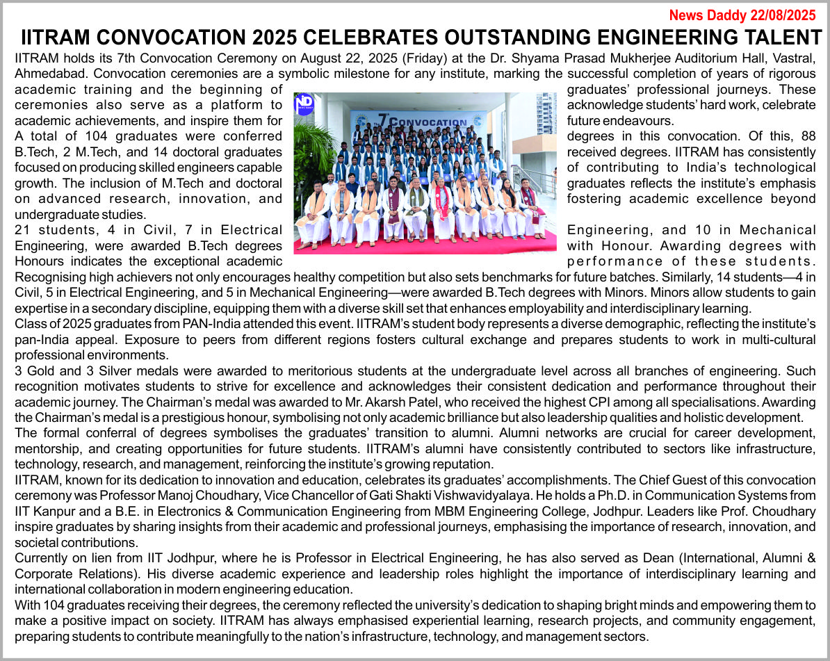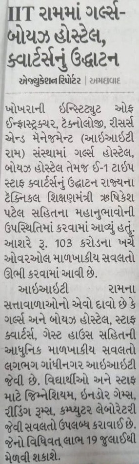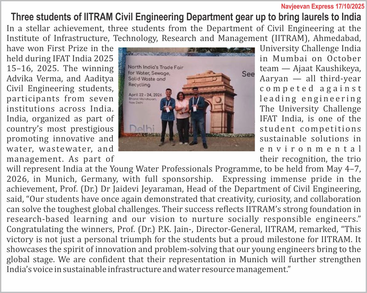 CONVOCATION| ONLINE PAYMENT| IITRAM MIS| LIBRARY| TENDER| CAREER| ALUMNI| NEWS| SSIP 2.0 Cell| FAQ @IITRAM
